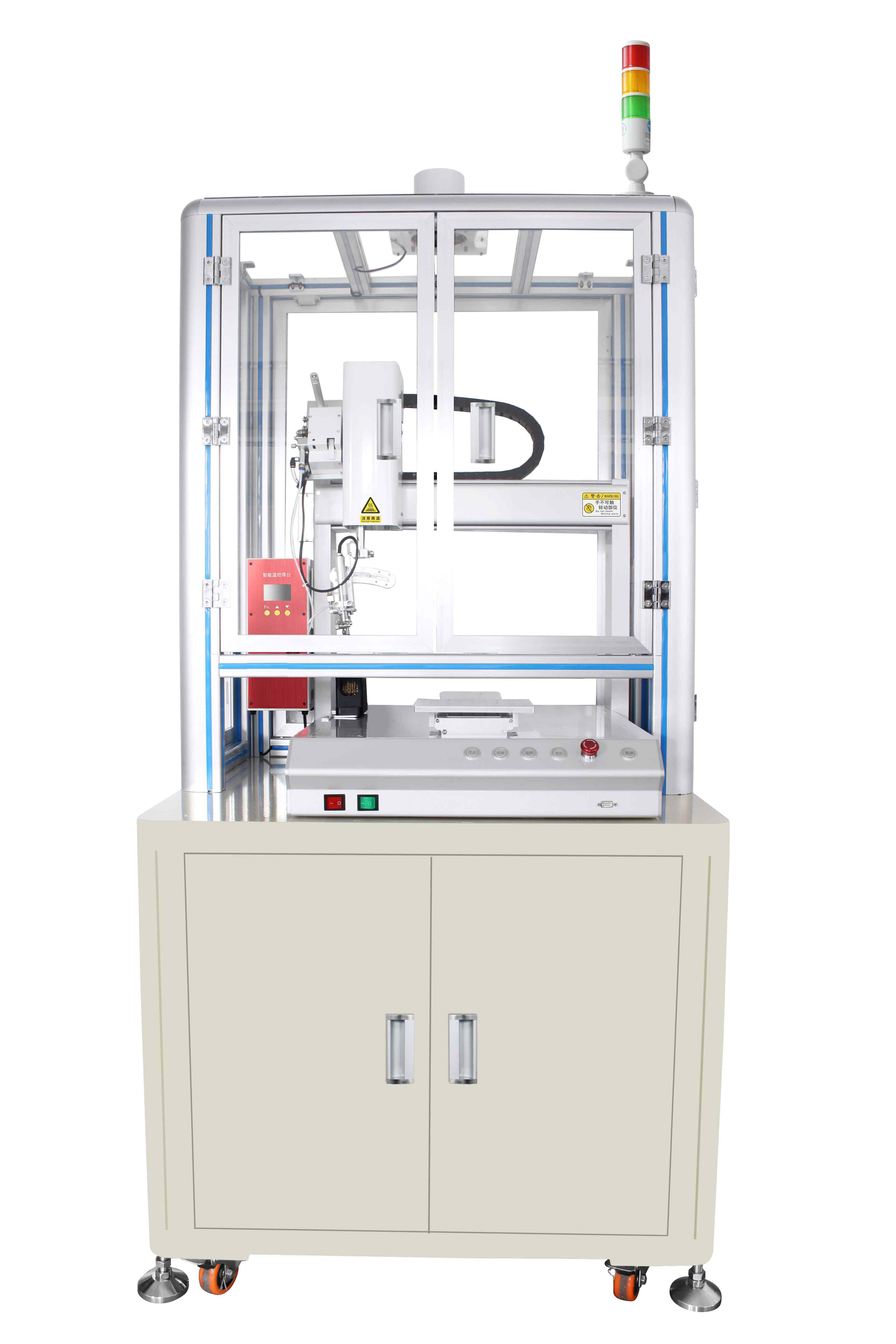 自動91短视频黄网站APP機是一種91短视频黄网站APP焊接設備,所以除了機械手運動功能外,其主要還是要完成91短视频黄网站APP作業。所以91短视频黄网站APP機器人的核心部分是焊接係統。91短视频黄网站APP係統主要構成為自動送錫機構和溫控、發熱體、烙鐵頭。自動91短视频黄网站APP機是一種能夠代替手工焊接的設備。它是由多個機械手、送錫係統、控製係統、烙鐵係統組成的高精密自動化設備。
