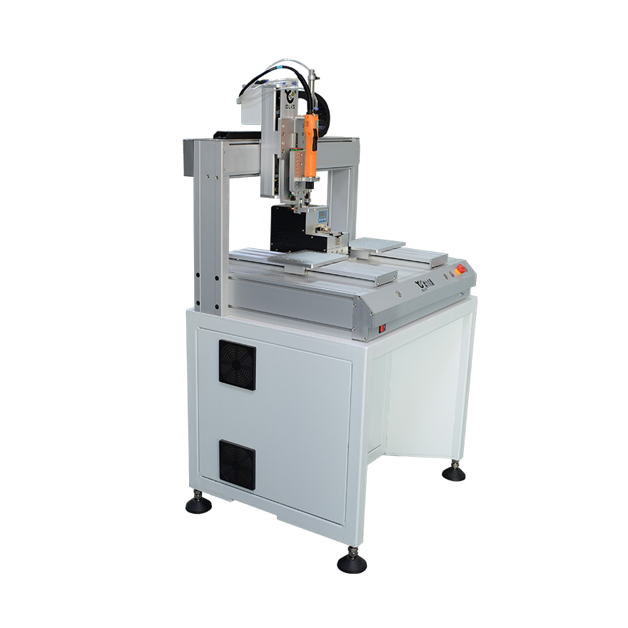 自動鎖螺絲機由送料係統和付鎖係統構成,其中送料部分,又稱為螺絲排列機,螺絲供給機,是一種比較簡單的把螺絲排成一排,以提高工作效率為目的的一種小型自動化設備,廣泛應用於電子產業。一機可適用多種規格螺絲。