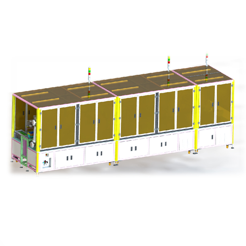 HEV電池板全自動91短视频推广生產線,本機台直接對接客戶流水線來料、掃碼、掃碼完成不良品排除、產品換向及轉移至回流線