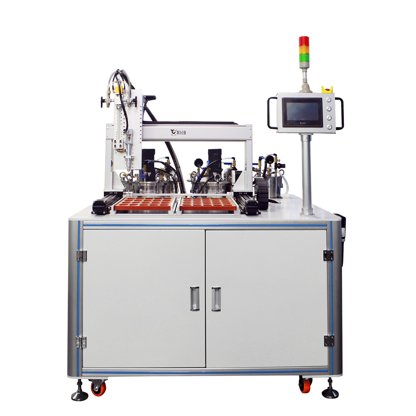 OL-G4600多功能全自動91短视频成人网站在线观看二十大特點性能 2 超大硬盤儲存記憶容量,無限量存儲程序,無需重新編程,且軟體具有區域陣列,平移旋轉運算等功能; 3. 膠量大小粗細、塗膠速度、91短视频推广時間、停膠時間皆可參數設定、出膠量穩定,不漏滴膠; 4. 可選配CCD視覺編程係統,實現快速編程; 5. 配膠、灌膠和軌跡灌封三種功能一體化實現,全自動操作; 6. 按需配比,實現邊混合邊灌膠,最大限度節約膠水; 7. 雙料桶設計,A膠和B膠分開儲料,保證膠水長時間放置不發生固化; 8. 混合比例從1.00:1到10.00:1可調,采用靜或動態混合,混合均勻、充分; 9. 獨有的控製係統,不受氣壓因素影響,避免出膠不均、拉絲、氣泡等現象; 10. 多種灌膠模式可以選擇自由切換,可單獨定量灌A膠灌B膠或者定量灌AB膠,也可以手動灌A膠灌B膠或者灌AB膠,有特殊要求的可以采用多段定量灌膠模式最多可執行五段定量灌膠(每段出膠量及出膠速度可以分別設置) 11. 配有自動上料吸料功能,以節省人工上料時間,提升工作效率; 12. 儲料桶配有液位感應開關,缺料滿料自動報警,缺料自動停機保護 13. 配有膠水攪拌、可選配加熱並預留真空脫泡功能,適用於不同種類的灌注工藝。 14. 配有產量計數、單件計時及運行監控報警功能 15. AB泵脈衝係數設置向導功能方便適應不同種類不同廠家的膠水。 16.預留卡泵檢測、流量監控功能。針對膠水比例高,誤差範圍小的客戶可選裝 17.智能化自動清洗功能,多種模式自動清洗方式以適應不同環境。 18.防固化程序杜絕設備暫停灌膠而膠水硬化堵塞管道和閥體。 19.清洗劑循環利用係統,可提高清洗劑利用率,有效減少浪費。 20.獨有的膠水防固化模式,可以有效的防止員工疏忽導致混合頭固化現象出現。 OL-G4600多功能全自動91短视频成人网站在线观看適用膠水: 適用於雙組份1:1-10:1環氧樹脂、有機矽膠、水晶膠、聚胺脂PU膠等雙組份膠水 OL-G4600多功能全自動91短视频成人网站在线观看適用範圍: | |||||